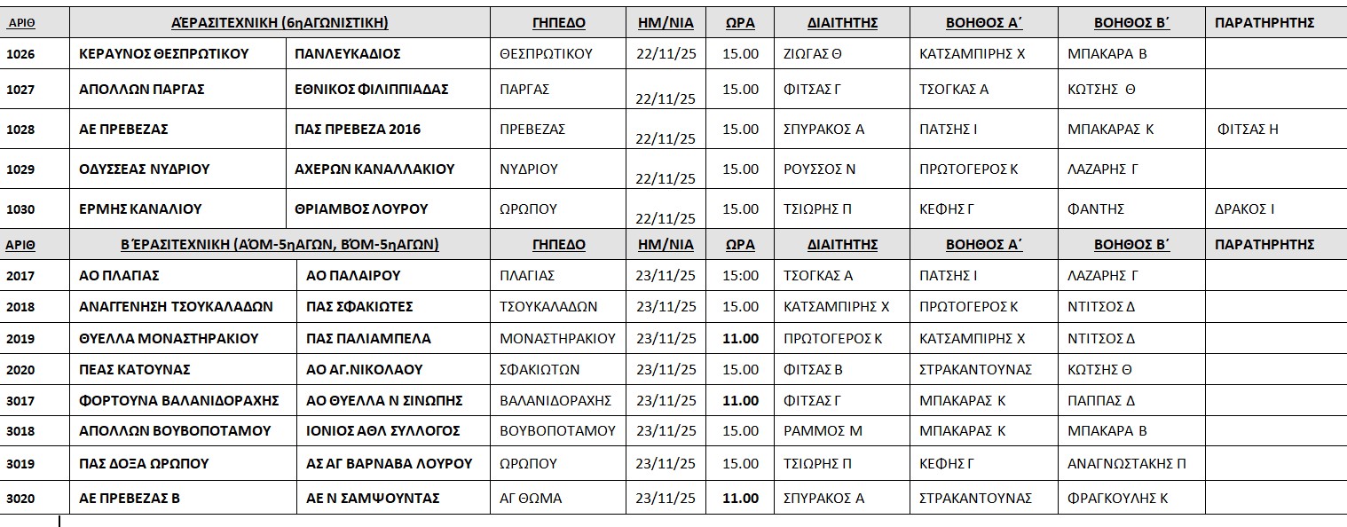 Αποστολή για το παιχνίδι ΕΠΣ ΠΡΕΒΕΖΑΣ ΛΕΥΚΑΔΑΣ - ΕΠΣ ΘΕΣΠΡΩΤΙΑΣ 29/10/2025