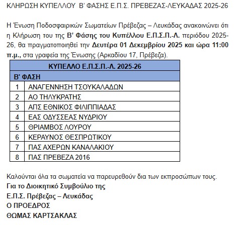ΟΡΙΣΜΟΙ ΔΙΑΙΤΗΤΩΝ ΕΠΣ ΠΡΕΒΕΖΑΣ 01/02-11-2025