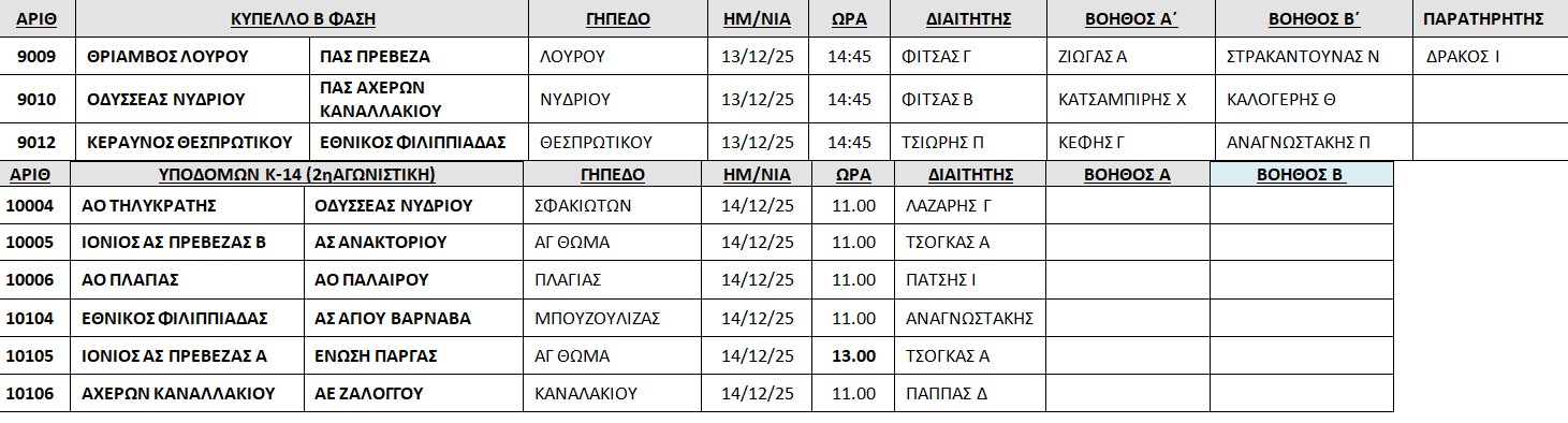 ΟΡΙΣΜΟΙ ΔΙΑΙΤΗΤΩΝ ΚΥΠΕΛΛΟ Β ΦΑΣΗ ΚΑΙ ΥΠΟΔΟΜΩΝ Κ14 13-14-12-2025