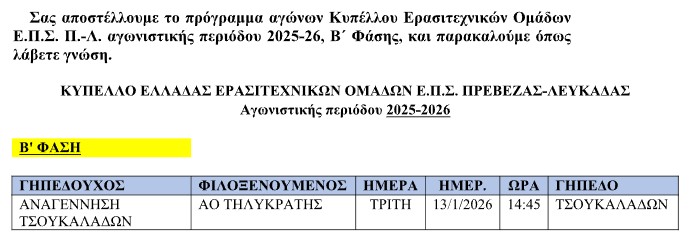 Β φαση κυπελλου 2025-26,ΑΝΑΓ/ΣΗ ΤΣΟΥΚΑΛ.-ΤΗΛΥΚΡΑΤΗΣ 13.1.2026