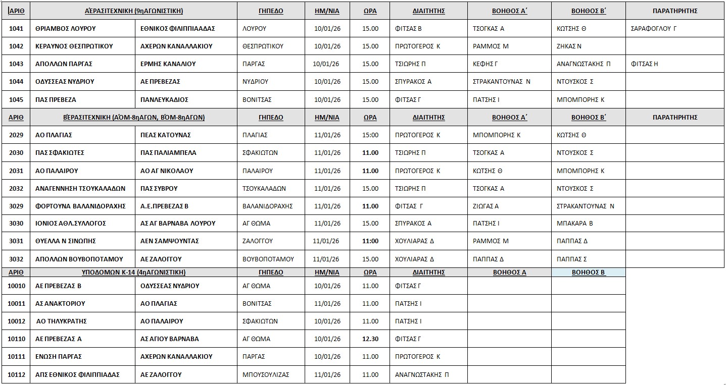 Οι διαιτητές των αγώνων 10-11/1/2026