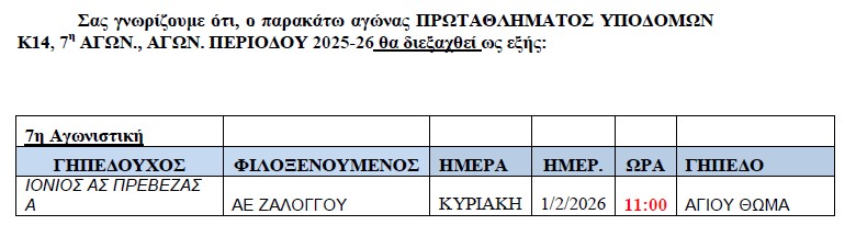 ΑΛΛΑΓΗ αγωνα Κ14., 7η αγων ΙΟΝΙΟΣ-ΖΑΛΟΓΓΟ