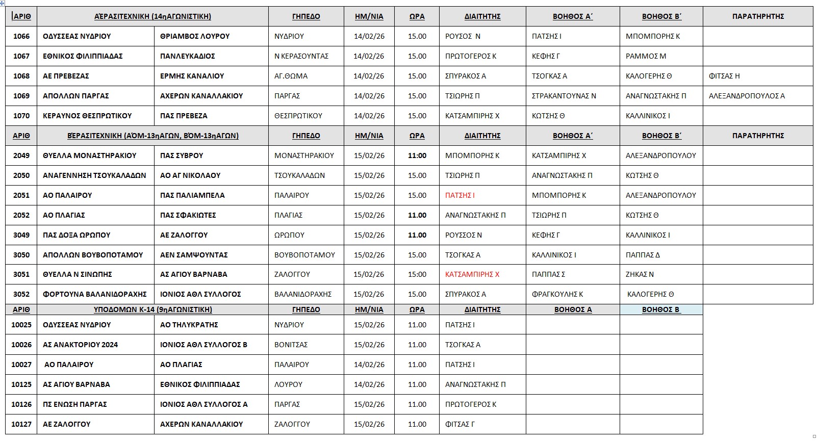 Αποστολή ΕΠΣ ΠΡΕΒ.ΛΕΥΚ. - ΕΠΣ ΚΕΡΚΥΡΑΣ ΤΡΙΤΗ 20.1.2026