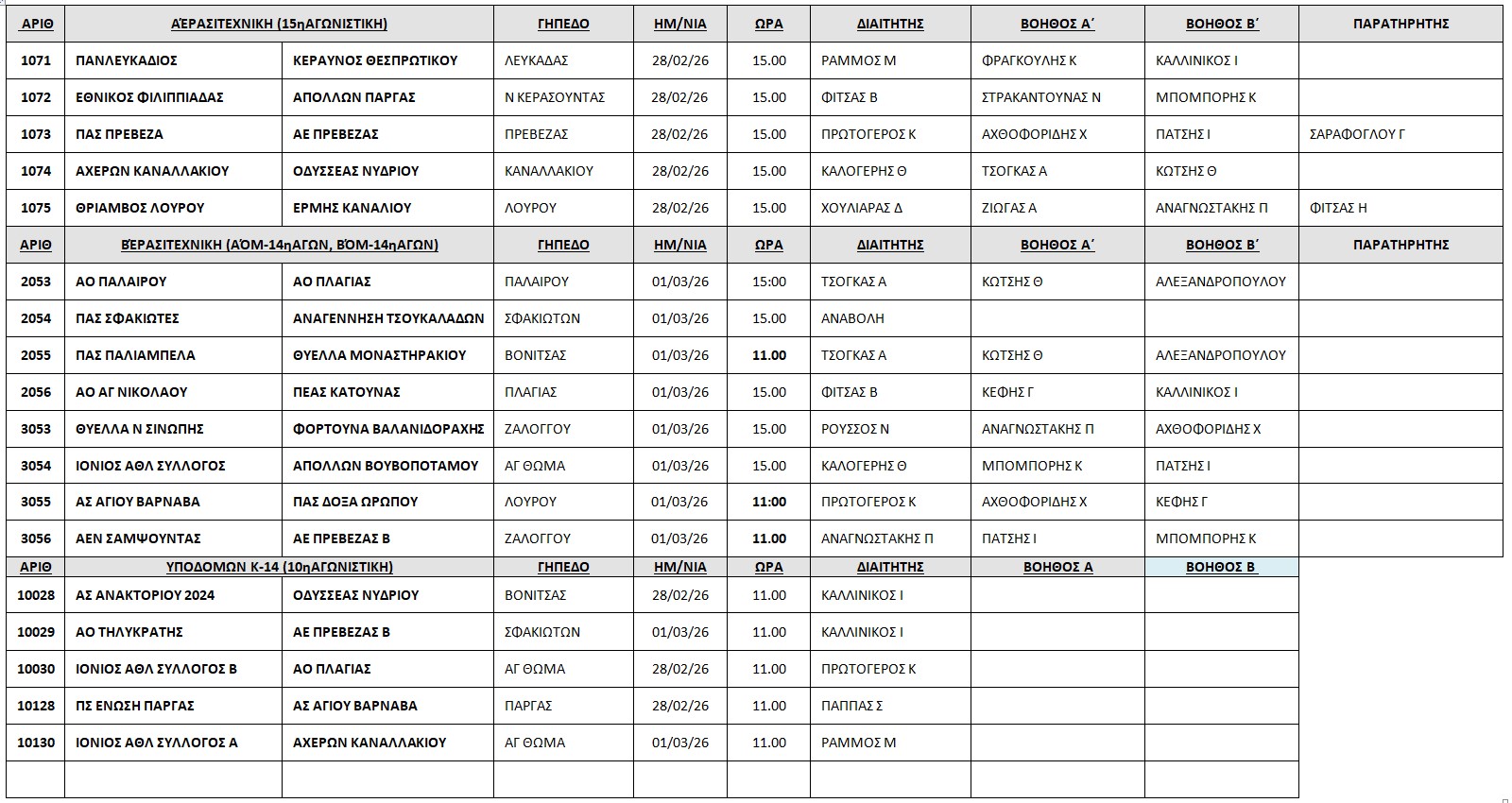 Οι διαιτητές των αγώνων 31/1 και 1/2/2026