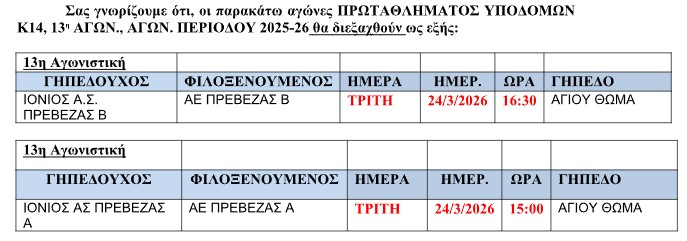 ΑΛΛΑΓΗ αγωνων Κ14., 13η αγων