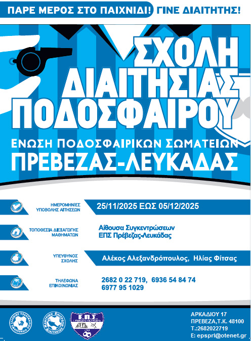 Νέα σχολή διαιτησίας στην ΕΠΣ Πρέβεζας - Λευκάδας