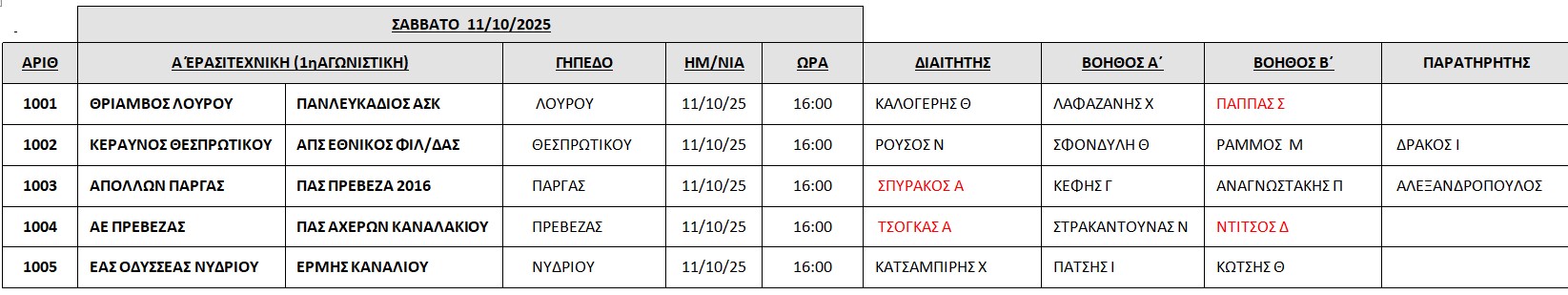Οι διαιτητές των αγώνων της Α ερασιτεχνικής (11/10/2025) - Ορθή επανάληψη