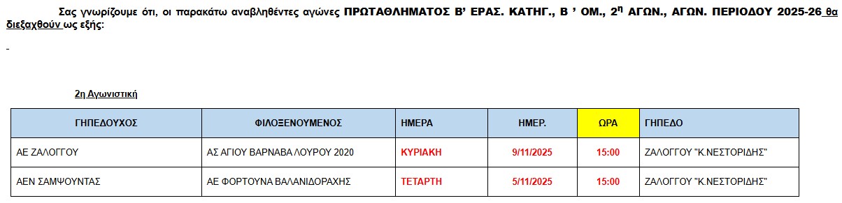 Ορισμός αναβληθέντων αγώνων Β' ερασ. κατηγ. Β' Ομ. 2η Αγων
