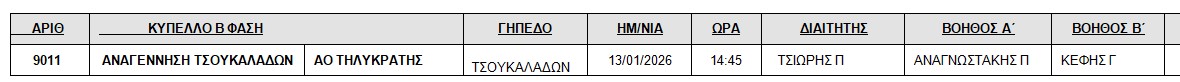 Οι διαιτητές του αγώνα κυπέλλου της Τρίτης 13/1/2026
