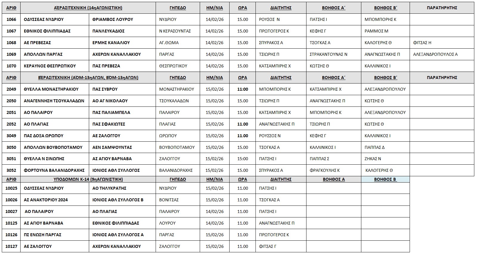 Αποστολή ΕΠΣ ΠΡΕΒ.ΛΕΥΚ. - ΕΠΣ ΚΕΡΚΥΡΑΣ ΤΡΙΤΗ 20.1.2026