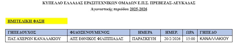 Αποστολή ΕΠΣ ΠΡΕΒ.ΛΕΥΚ. - ΕΠΣ ΚΕΡΚΥΡΑΣ ΤΡΙΤΗ 20.1.2026